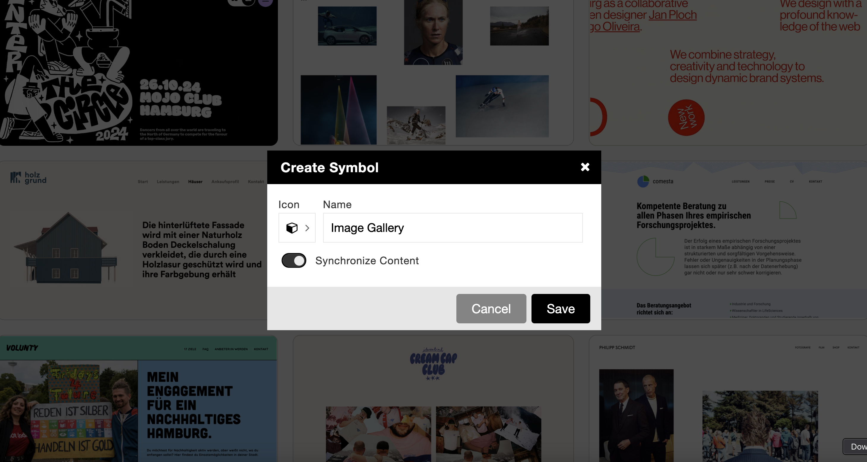 Symbols are now more organized and you can add a custom icon to them to make them easiert to identify. With the latest update it's also possible to create non-synchronized symbols (also known as patterns). Patterns can be individually edited without affecting other instances. They are a quick way to add pre-designed layout sections to your page.
