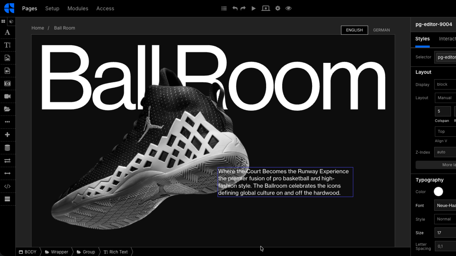 Editors will appreciate PAGEGRID's quick add feature, which simplifies adding elements to pages and blocks. Clicking the plus icon instantly adds items, saving time and effort. While quick add is great for speed, you can still use drag and drop for precise positioning.